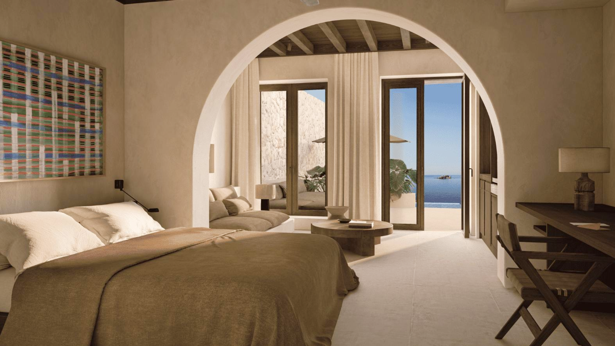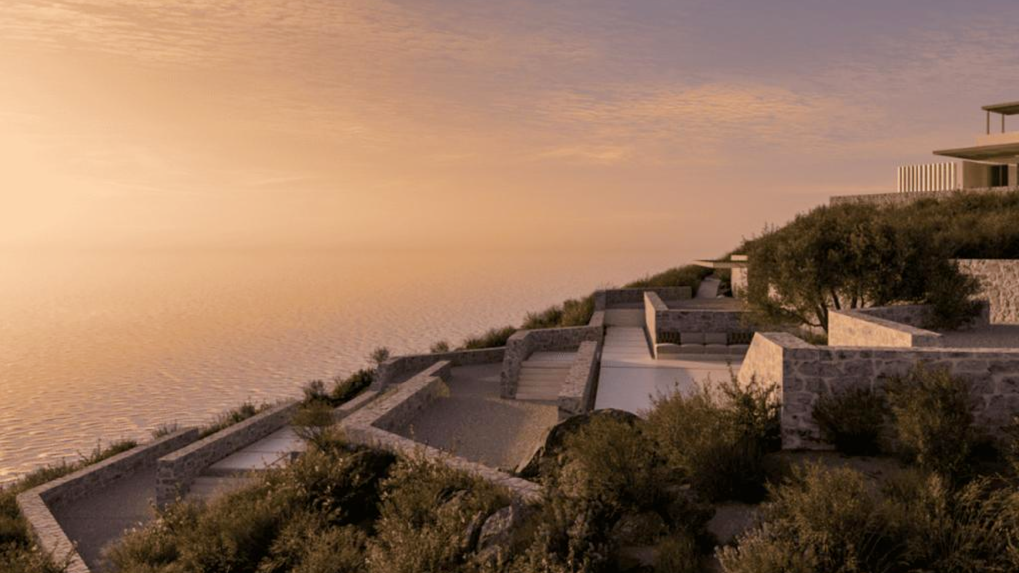 A naturally temperature-regulated environment provided by the earth’s thermal mass and total privacy via its cliffside orientation. Unique features include massive floor-to-ceiling glass apertures that frame the Aegean Sea as a living mural, raw concrete surfaces that echo the island’s tectonic textures, and a cantilevered infinity pool that merges seamlessly with the horizon. The design prioritizes silence and weight, stripping away excess to focus on the raw elements of wind, stone, and light. It is a provocative meditation on shelter, submission, and architectural sharpening of the natural landscape.